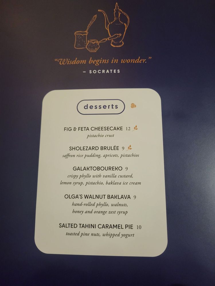crispy phyllo with vanilla custard, lemon syrup, pistachio, baklava ice cream